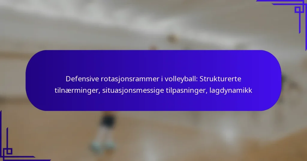Defensive rotasjonsrammer i volleyball gir strukturerte systemer som dikterer spillerposisjonering under defensive spill, noe som forbedrer lagkoordinasjon og dekning. Ved å analysere situasjonsfaktorer og forstå motstanderne, kan lagene tilpasse sine rotasjoner, noe som gir strategisk fleksibilitet og optimaliserte defensive strategier gjennom hele kampen. Key sections in the article: Toggle Hva er defensive rotasjonsrammer i volleyball? Definisjon og formål med defensive rotasjonsrammer Nøkkelkomponenter i defensive rotasjonsrammer Historisk utvikling av defensive rotasjonsstrategier Betydningen av defensive rotasjoner i spillstrategi Vanlig terminologi og konsepter…